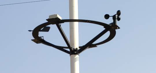 1、傳感器固定:圓盤正前方固定光照傳感器,左右兩側固定風速、風向傳感器
